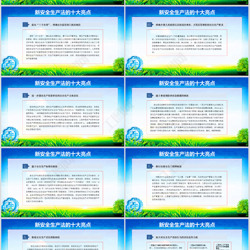 新安全生產法的十大亮點 2014年8月31日公布的新安全生產法(簡稱新法),認真貫徹落實關于安全生產工作一系列重要指示精神,從強化安全生產工作的擺位、進一步落實生產經營單位主體責任,政府安全監管定位和加強基層執法力量、強化安全生產責任追究等四個方面入手,著眼于安全生產現實問題和發展要求,補充完善了相關法律制度規定,主要有十大亮點。