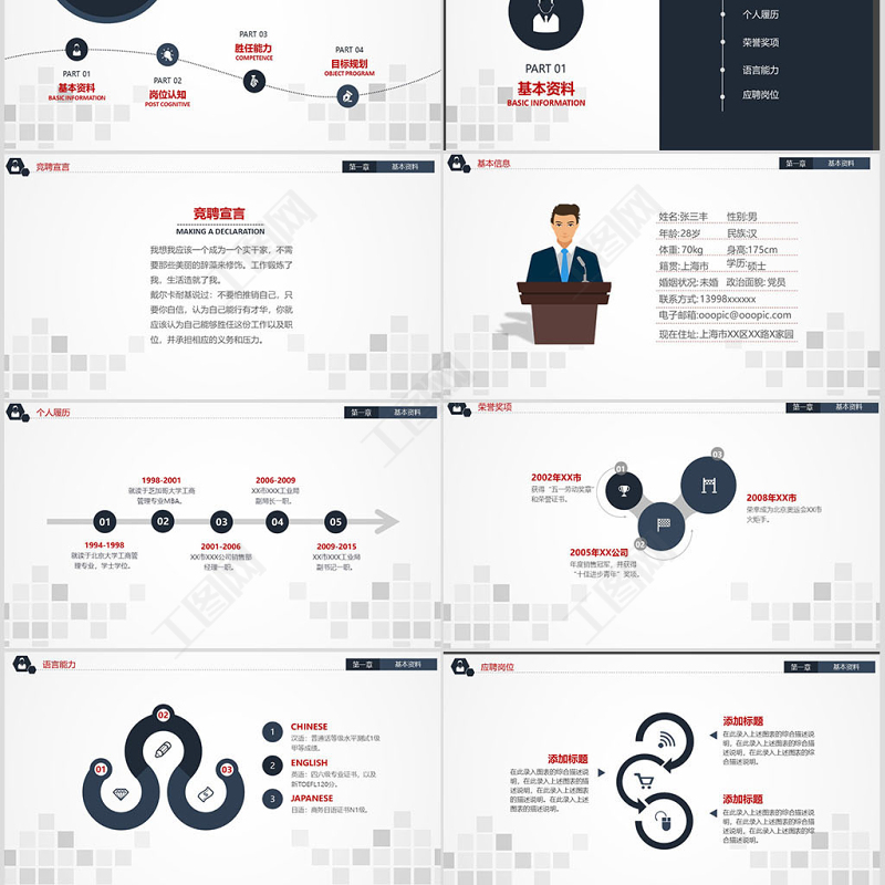 小清新個人崗位競聘ppt個人簡歷ppt模板幻燈片包含