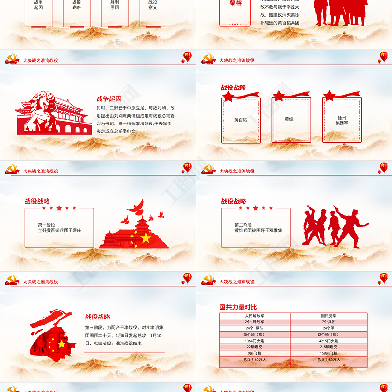 工圖網(wǎng)提供大決戰(zhàn)之淮海戰(zhàn)役PPT犧牲最重殲敵最多影響最大戰(zhàn)爭(zhēng)樣式最復(fù)雜的戰(zhàn)役學(xué)黨史黨課課件供會(huì)員免費(fèi)下載。更多精彩黨課PPT素材,盡在工圖網(wǎng)。