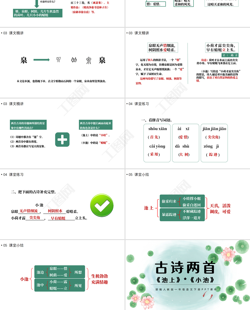 2022古詩二首池上小池PPT手繪中國風課文第12課小學一年級語文下冊部編人教版教學課件 Array