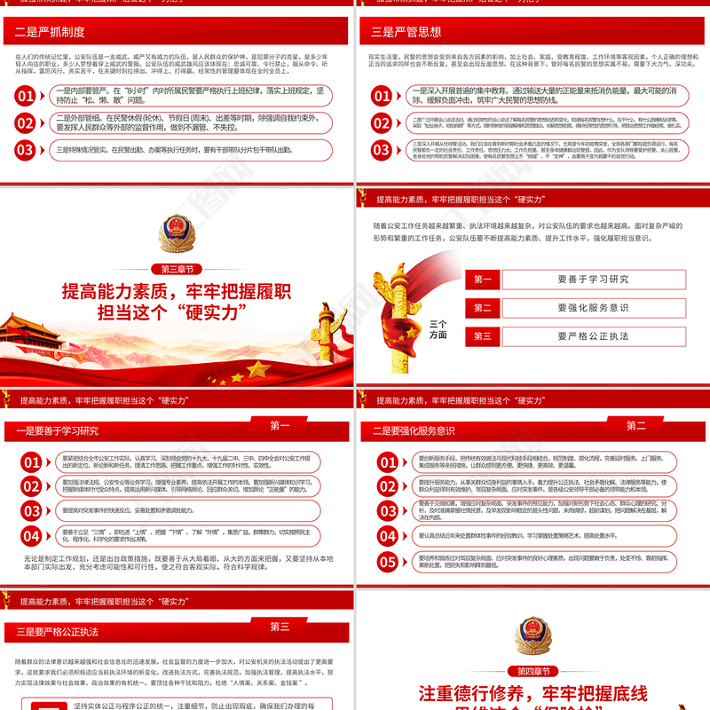 目錄導讀強化思想認識,牢牢把握政治建警這個“總開關”01加強帶隊抓建,牢牢把握從嚴治警這個“刀把子”02提高能力素質,牢牢把握履職擔當這個“硬實力”03注重德行修養,牢牢把握底線思維這個“保險栓”04