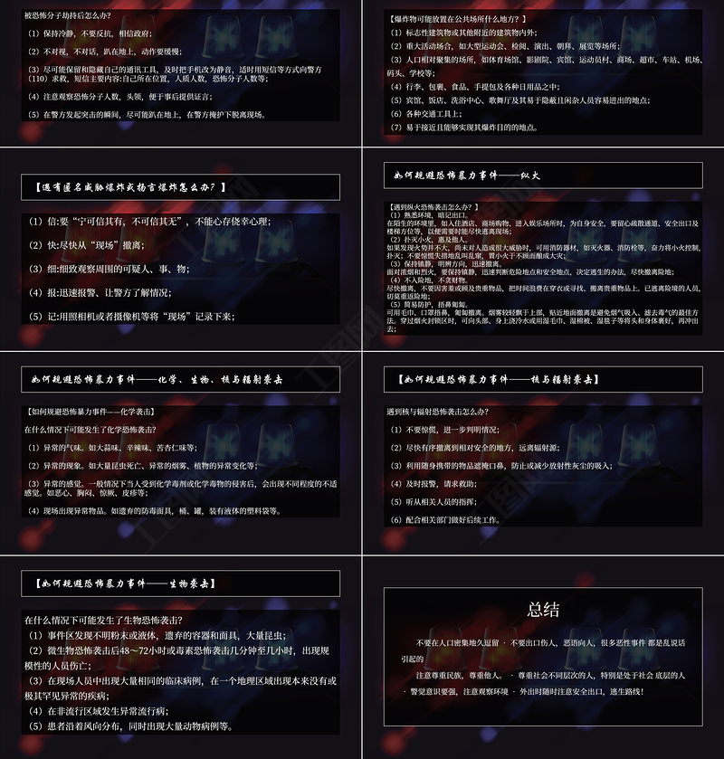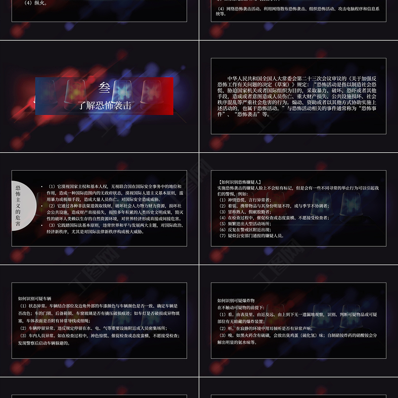 暗黑系反恐防暴安全教育主題班會(huì)ppt 打擊 反恐防暴 反恐防爆 防爆 應(yīng)急預(yù)案 防暴知識(shí) 公安 派出所 武警 部隊(duì) 防暴隊(duì) 展板 宣傳欄 反恐 知識(shí)宣傳欄 防暴 教育宣傳欄 110宣傳日 110宣傳日展板 教育 Array