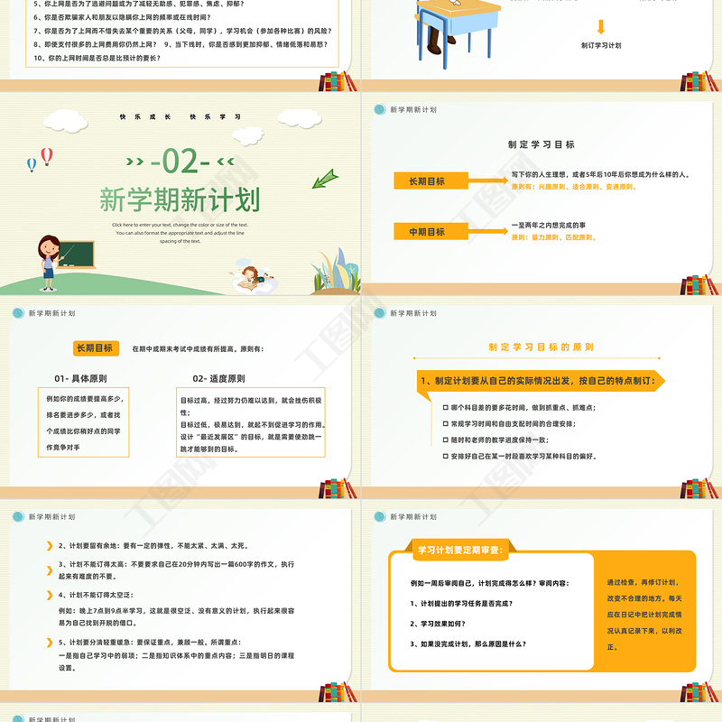 在期中或期末考試中成績有所提高。原則有:長期目標01- 具體原則02- 適度原則