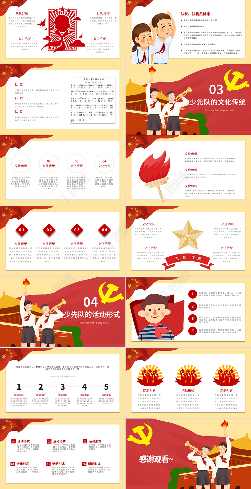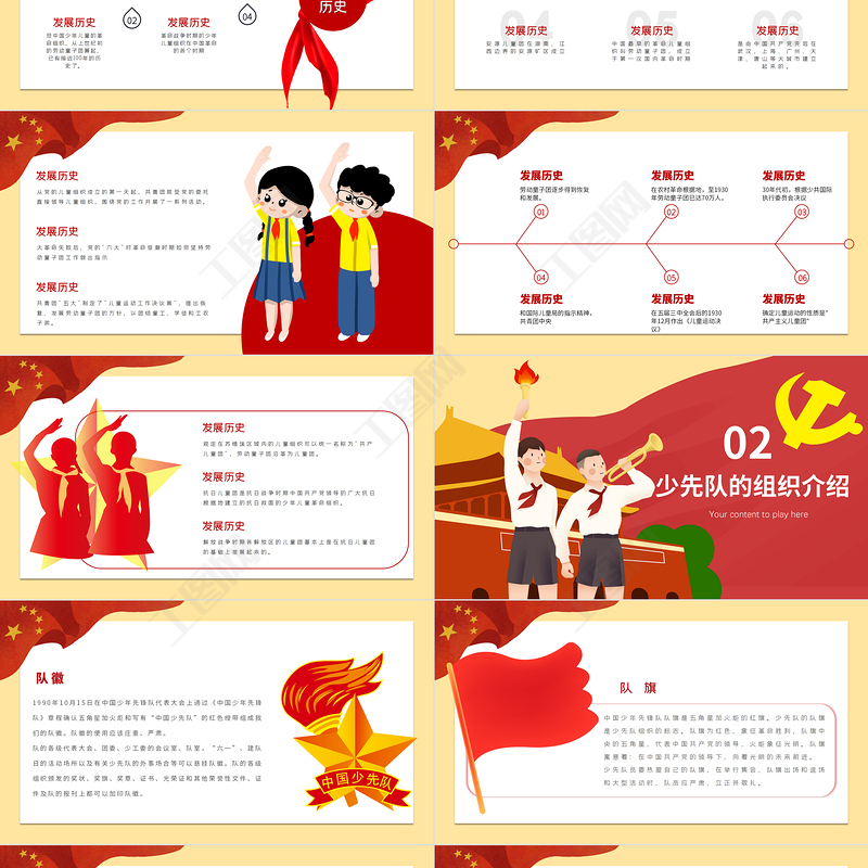 原創小學生少年先鋒隊少先隊紅領巾PPT模板-版權可商用包含