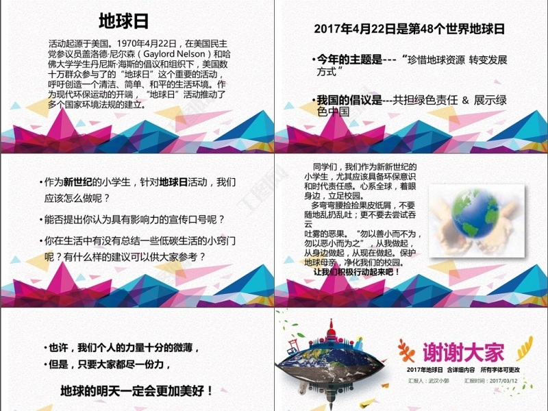 工圖網提供原創2017年世界地球日節能環保環境保護通用-版權可商用供會員免費下載。更多精彩黨課PPT素材,盡在工圖網。