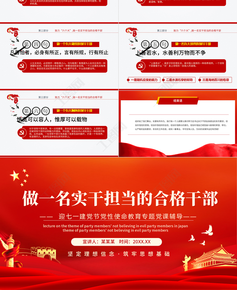 工圖網(wǎng)提供黨性使命教育專題黨課輔導(dǎo)做一名實干擔(dān)當?shù)暮细窀刹縋PT模板供會員免費下載。更多精彩黨課PPT素材,盡在工圖網(wǎng)。