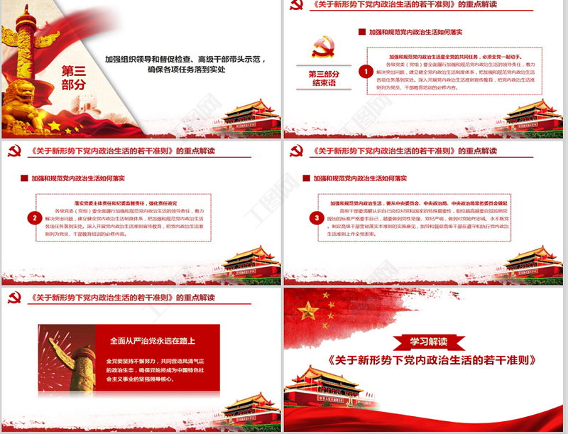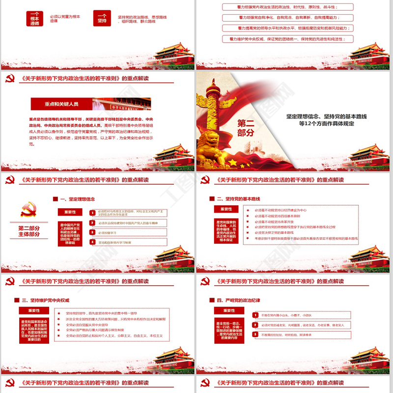 工圖網提供關于新形勢下黨內政治生活的若干準則PPT供會員免費下載。更多精彩黨課PPT素材,盡在工圖網。