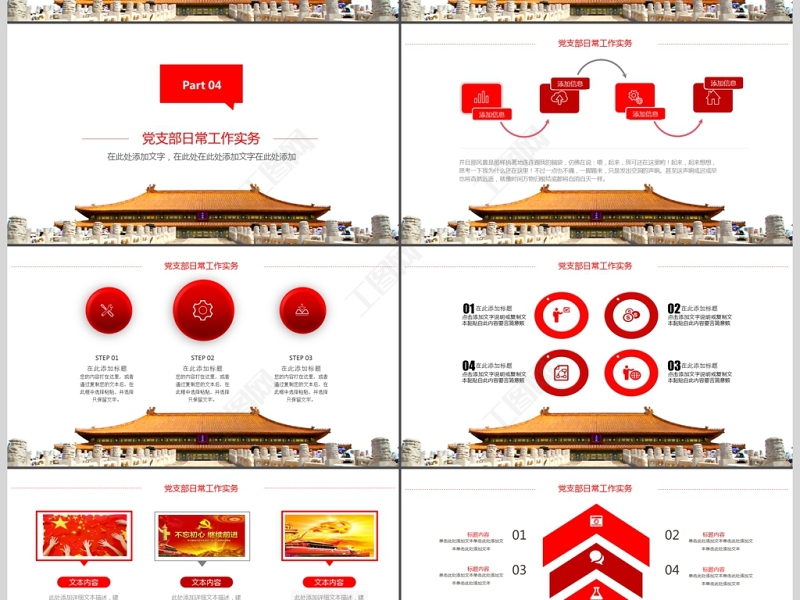 單擊此處添加文本,本模版所有圖形線條及其相應素材均可自由編輯、改色、替換,建議您在展示時字體選擇微軟雅黑。單擊此處添加文本,本模版所有圖形線條及其相應素材均可自由編輯、改色、替換,建議您在展示時字體選擇微軟雅黑。 黨務工作要點介紹