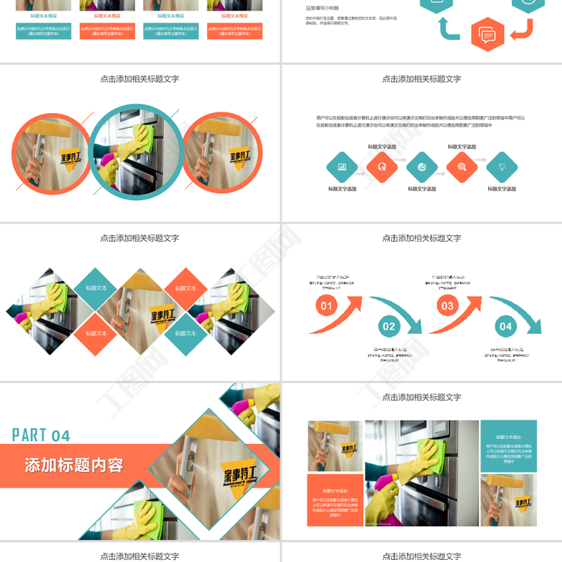 工圖網提供原創家政服務宣傳簡介動態PPT模板供會員免費下載。更多精彩黨課PPT素材,盡在工圖網。