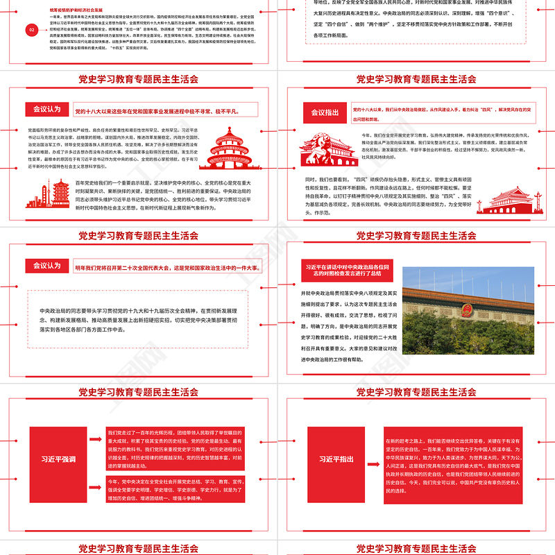 黨史學習教育專題民主生活會PPT 弘揚偉大建黨精神 堅持黨的百年奮斗歷史經驗 增加歷史自信 增進團結統一 增強斗爭精神 黨課 學黨史 悟思想 辦實事 開新局 維護黨中央集中統一領導 勇于擔當作為 不忘初心使命 走好新的趕考之路 Array