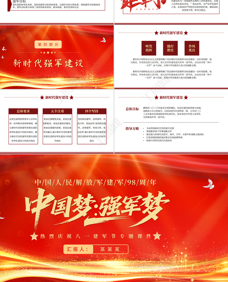 2025鐵血鑄軍魂PPT紅色大氣熱烈慶祝建軍98周年專題黨課課件模板 Array