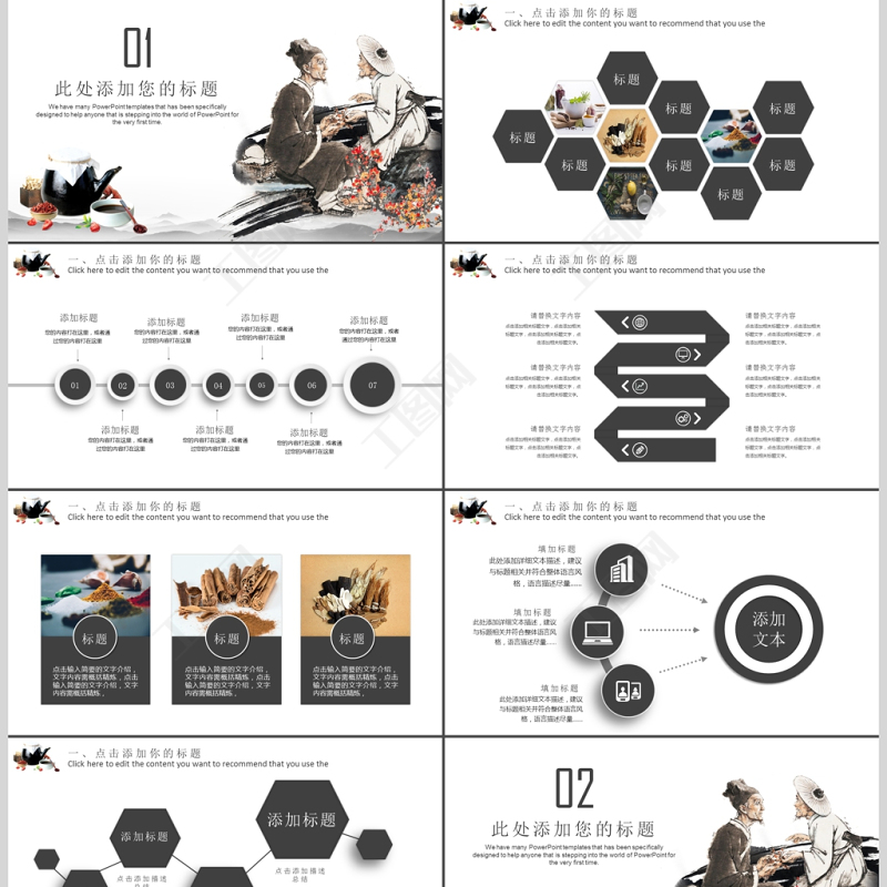 古典中醫學中醫院中醫文化中草藥PPT模板包含
