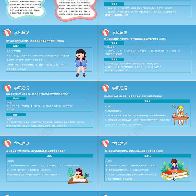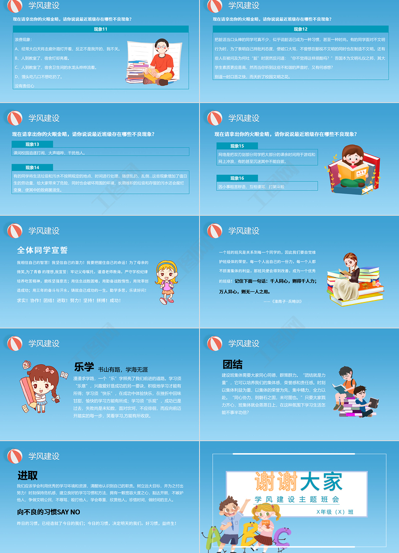 工圖網提供藍色海邊卡通插畫學風建設主題班會ppt供會員免費下載。更多精彩黨課PPT素材,盡在工圖網。