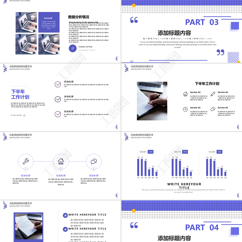2024藍色述職報告工作總結PPT模板幻燈片包含