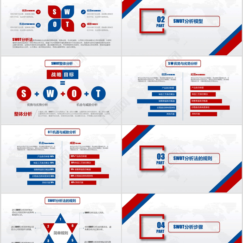 工圖網提供實用企業個人商業會議演講SWOT分析案例優劣勢商務報告PPT模板供會員免費下載。更多精彩黨課PPT素材,盡在工圖網。
