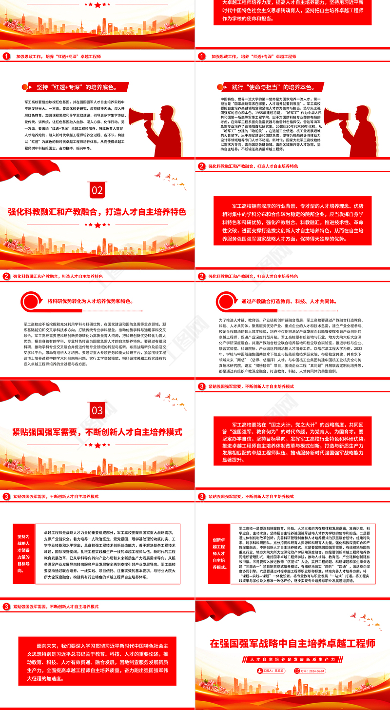 在強國強軍戰略中自主培養卓越工程師PPT簡約黨政風聚焦人才培養課件 Array