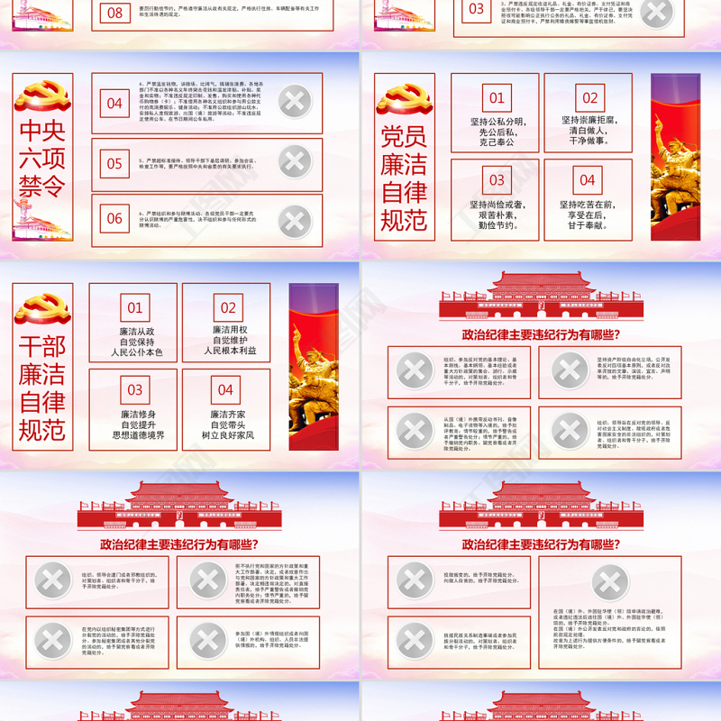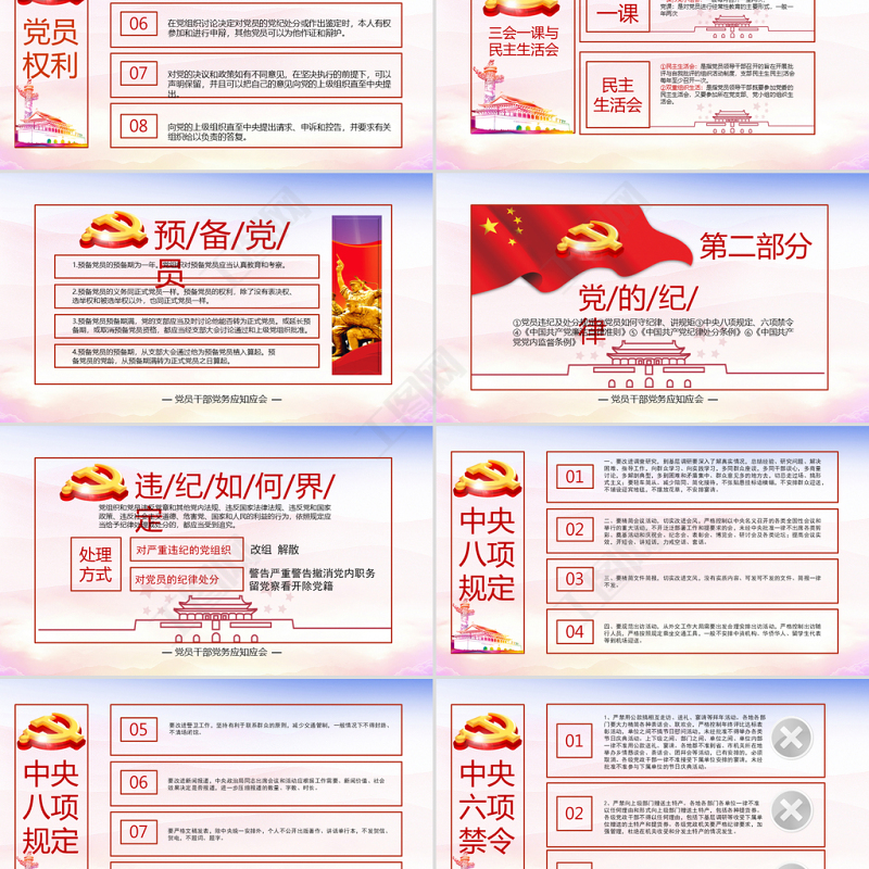 第二部分黨/的/紀/律①黨員違紀及處分規定②黨員如何守紀律、講規矩③中央八項規定、六項禁令④《中國共產黨廉潔自律準則》⑤《中國共產黨紀律處分條例》⑥《中國共產黨黨內監督條例》 — 黨員干部黨務應知應會 —