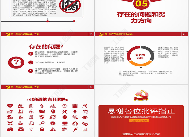 五、存在的問題和努力方向可編輯的備用圖標