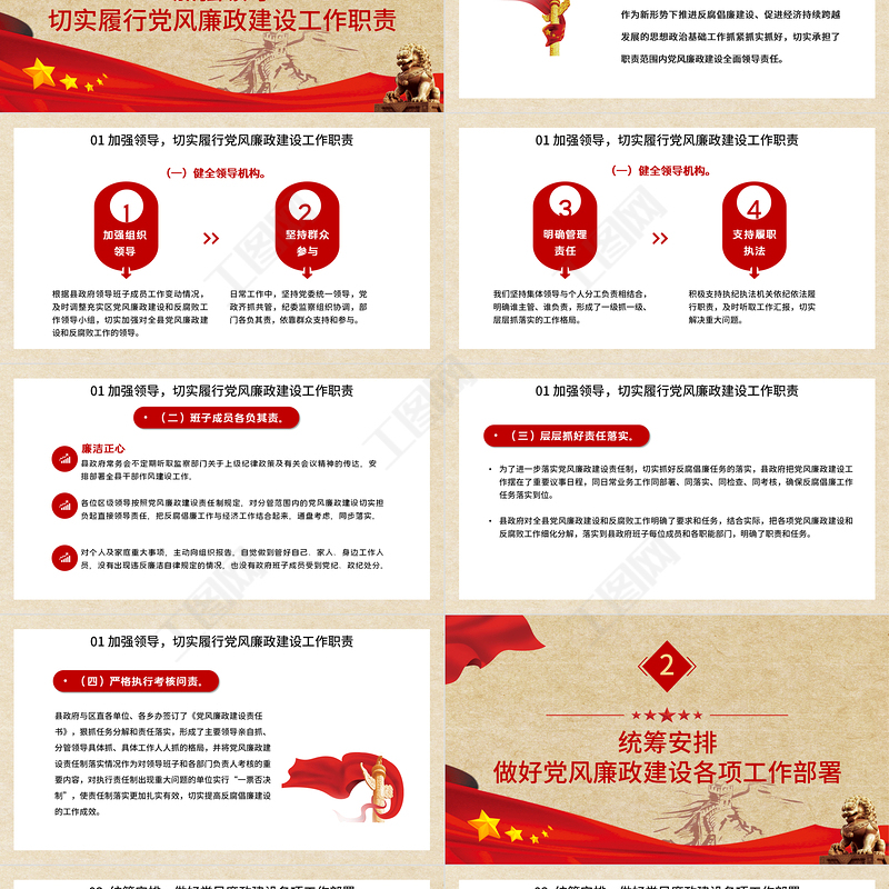 黨風廉政建設總結PPT紅色質感黨政部門年終工作總結述職述廉工作報告模板 Array