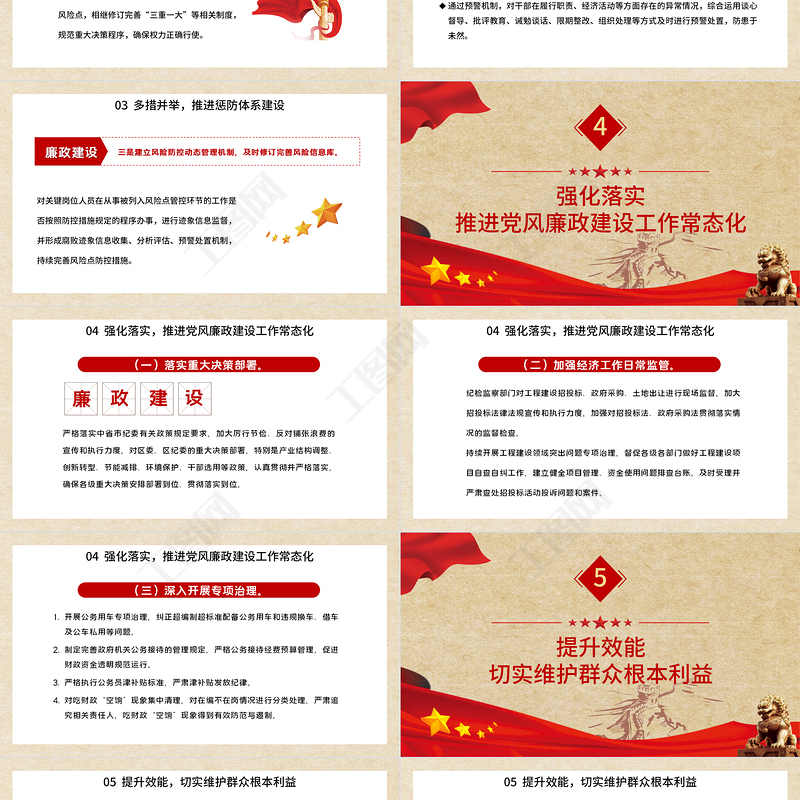 工圖網提供黨風廉政建設總結PPT紅色質感黨政部門年終工作總結述職述廉工作報告模板供會員免費下載。更多精彩黨課PPT素材,盡在工圖網。