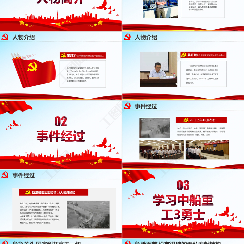 工圖網提供原創學習中船重工第七六所黃群等3名同志先進事跡-版權可商用供會員免費下載。更多精彩黨課PPT素材,盡在工圖網。