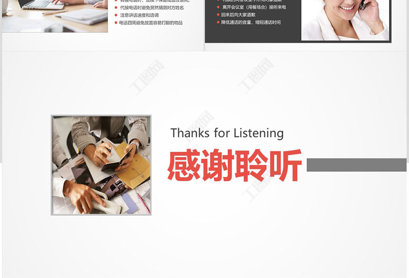 接聽電話基本觀念電話扮演內外聯系工作的第一線角色,完全靠聲音和語言與對方溝通,客戶滿意是否常靠這一線間。三種觀念,長期培養,不斷磨練,日久就能 “心口合一” 應對自然確當。以客為尊將心比心判斷與應變