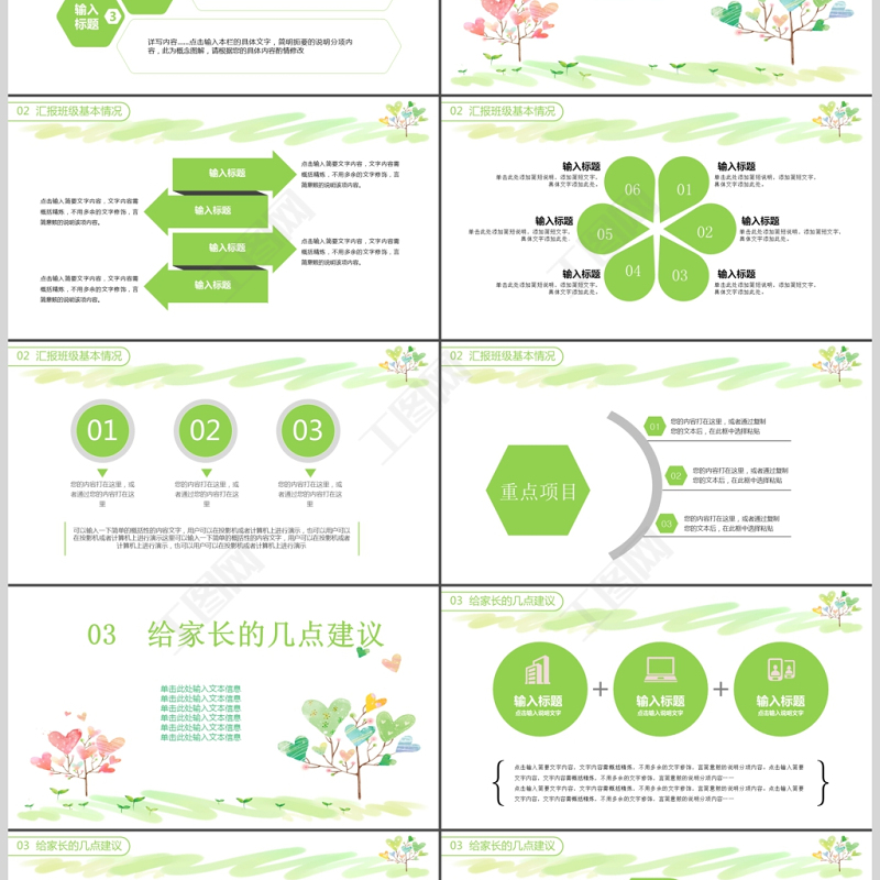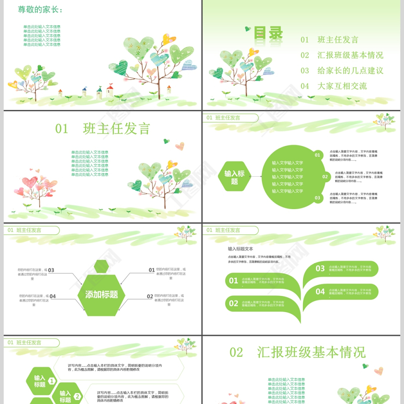 綠色環保卡通清新環境保護愛護家園主題班會課件講座PPT包含