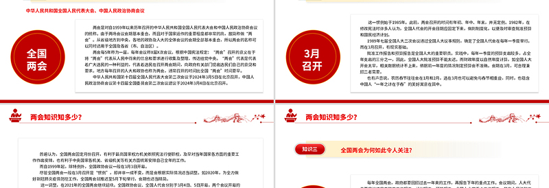兩會知識知點問答PPT紅色精美關(guān)注兩會聚焦民生七個知識點帶你了解兩會黨課課件