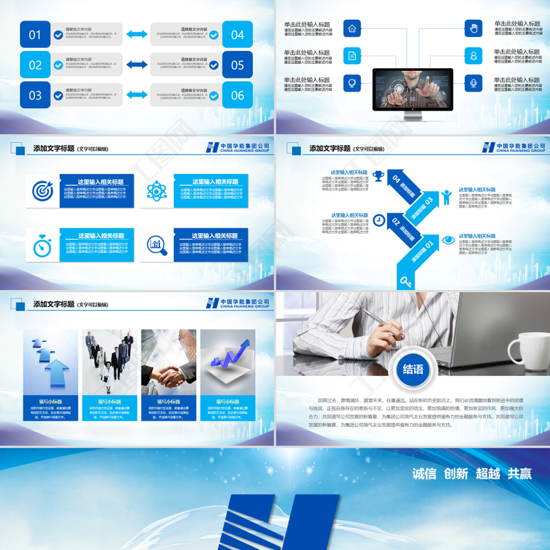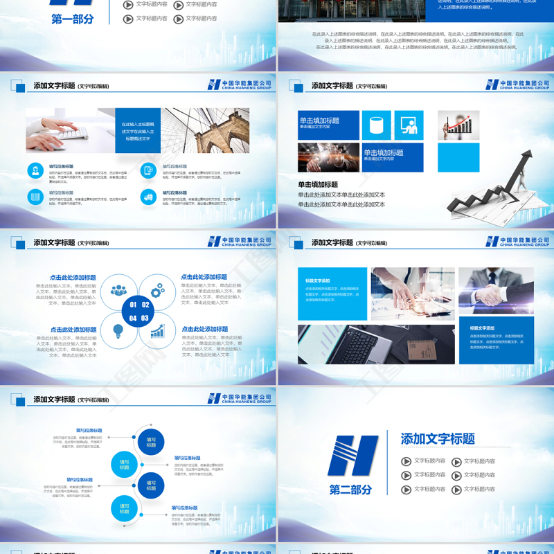 工圖網提供藍色大氣中國華能集團年終總結計劃PPT供會員免費下載。更多精彩黨課PPT素材,盡在工圖網。