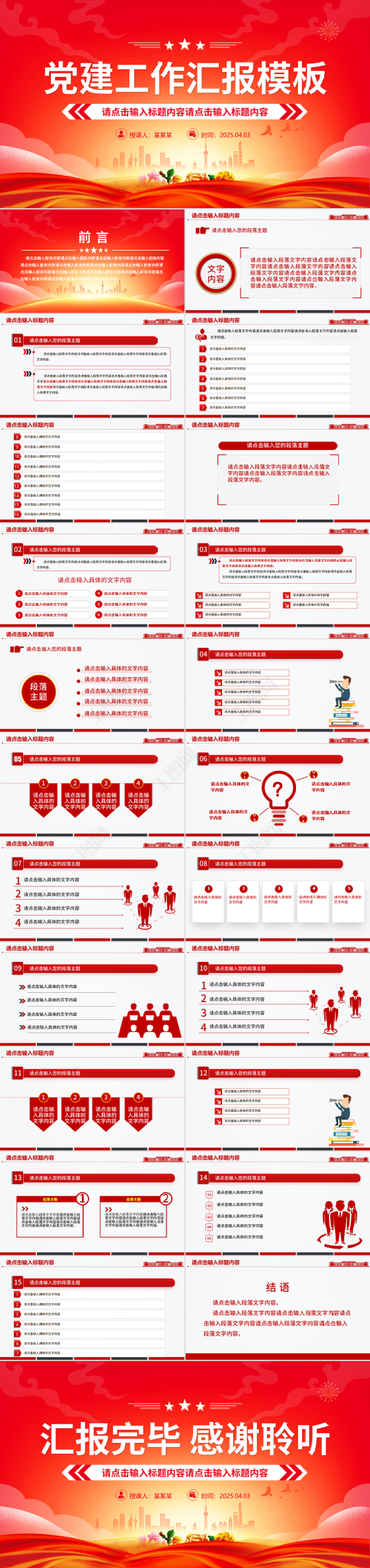 精美大氣通用型基層黨建工作匯報(bào)PPT模板下載 Array