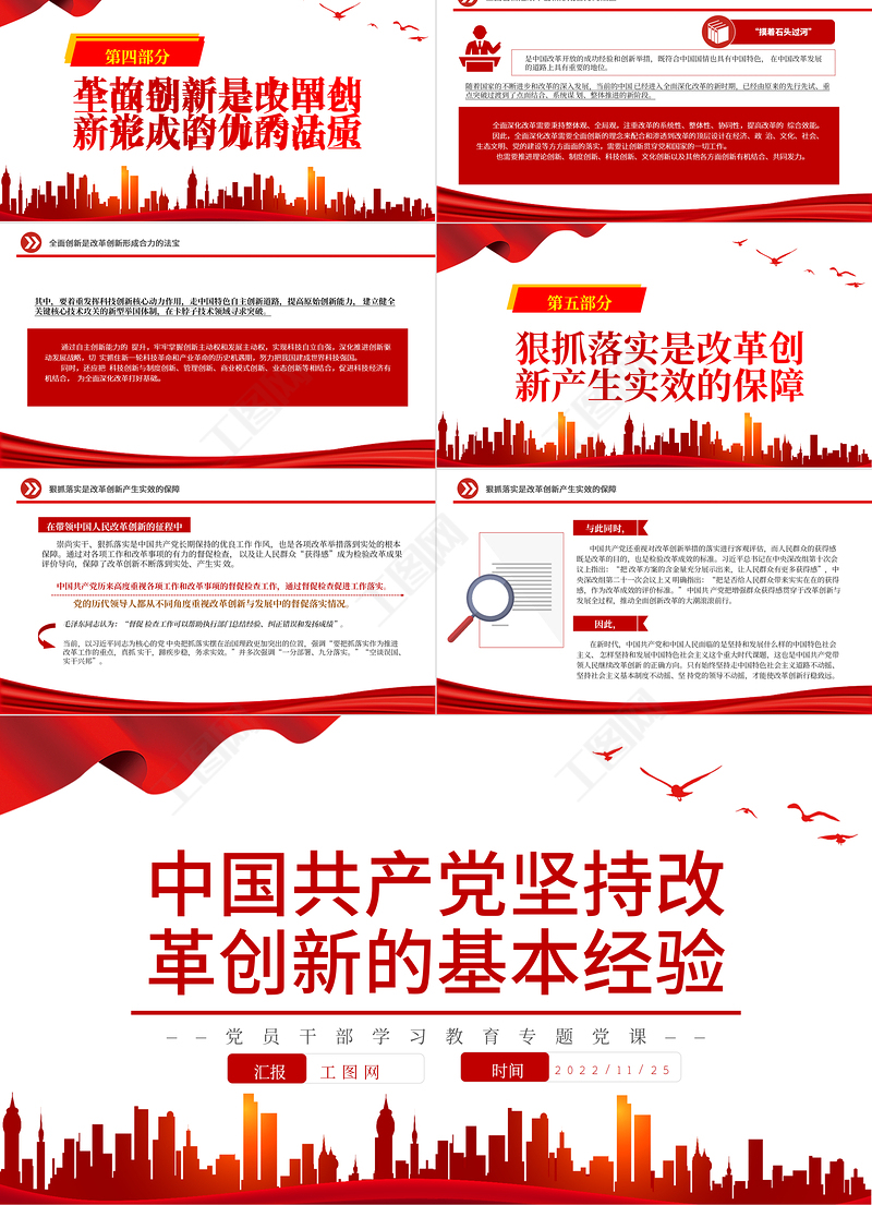 工圖網提供2022中國共產黨堅持改革創新的基本經驗PPT大氣黨建風黨員干部學習教育專題黨課黨建課件供會員免費下載。更多精彩黨課PPT素材,盡在工圖網。