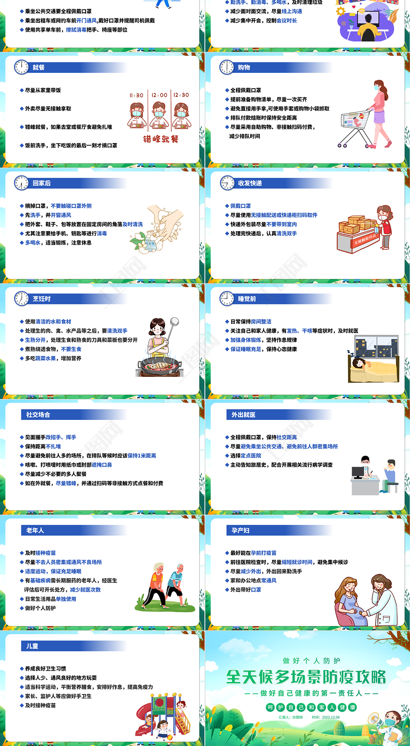 全天候多場景防疫攻略——做好自己健康的第一責任人——做好個人防護匯報人:辦圖網 時間:2022.12.08