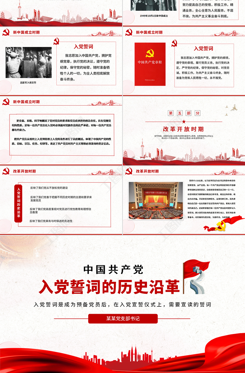 入黨誓詞的歷史沿革PPT紅色中國風重溫入黨誓詞喚醒黨章意識黨員學習課件下載