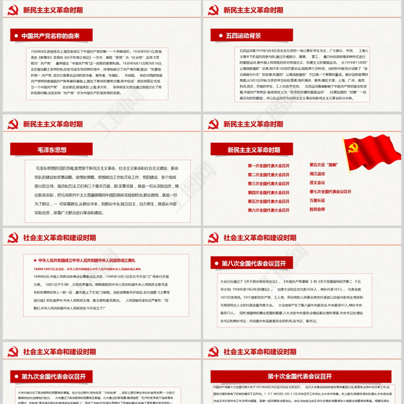 第一次全國代表大會召開第二次全國代表大會召開第三次全國代表大會召開第四次全國代表大會召開第五次全國代表大會召開第六次全國代表大會召開第五次反“圍剿”湘江戰役遵義會議第七次全國代表會議召開萬里長征勝利會師新民主主義革命時期