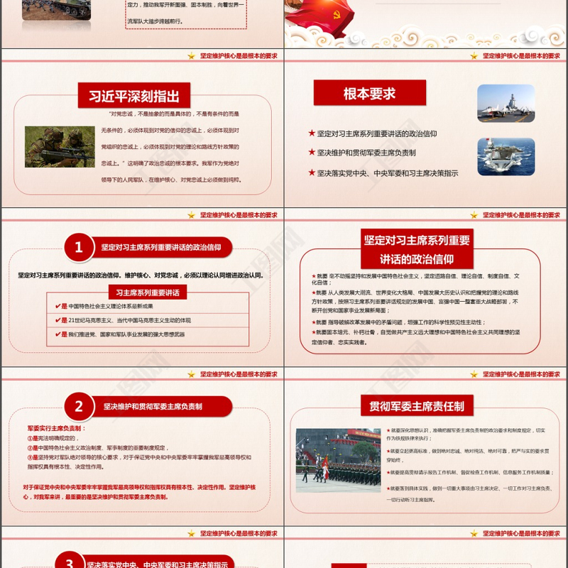 根本要求★ 堅(jiān)定對(duì)習(xí)主席系列重要講話的政治信仰★ 堅(jiān)決維護(hù)和貫徹軍委主席負(fù)責(zé)制★ 堅(jiān)決落實(shí)黨中央、中央軍委和習(xí)主席決策指示