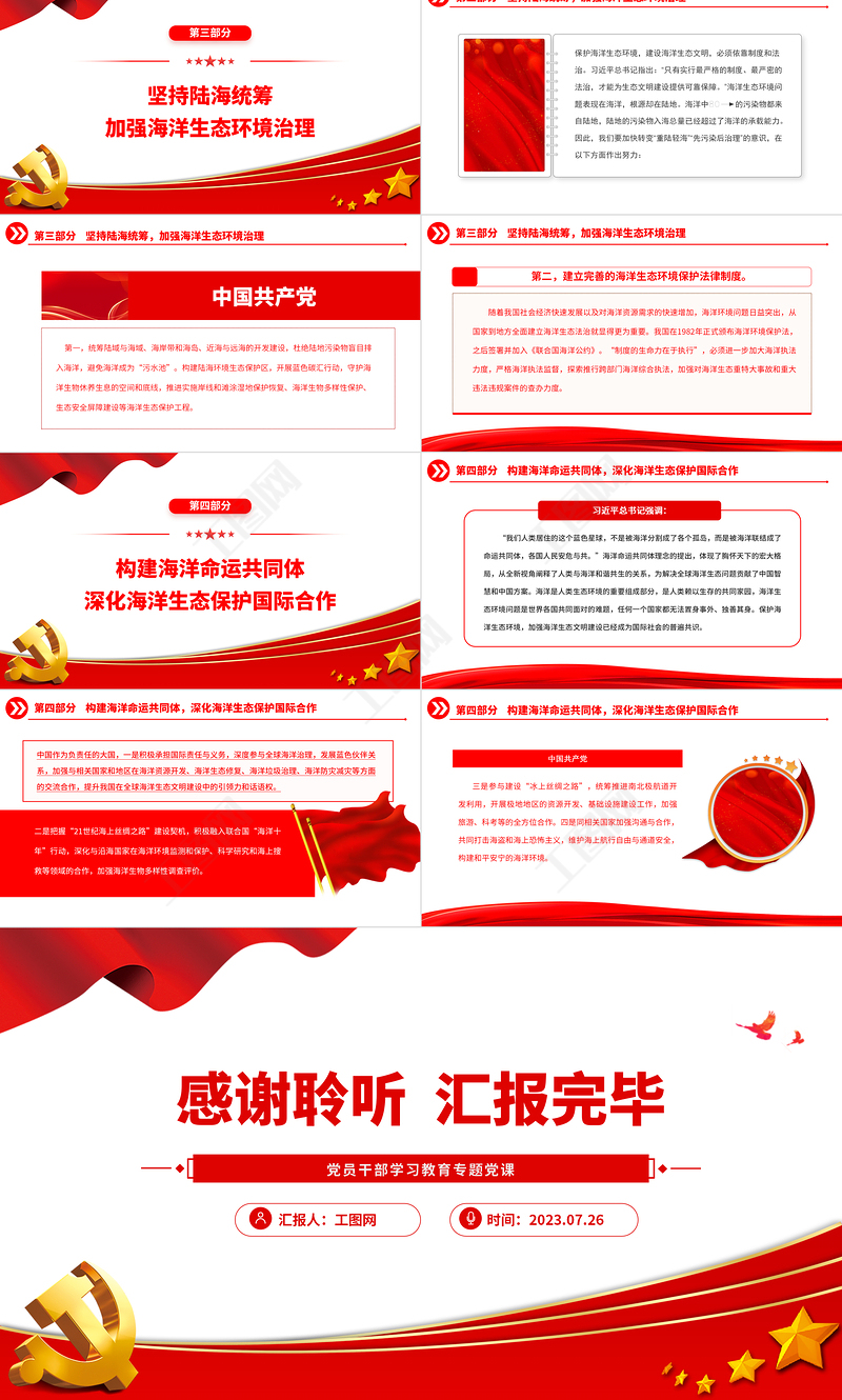 工圖網提供2023堅持綠色發展理念積極推進海洋生態文明建設PPT大氣精美風黨員干部學習教育專題黨課課件供會員免費下載。更多精彩黨課PPT素材,盡在工圖網。