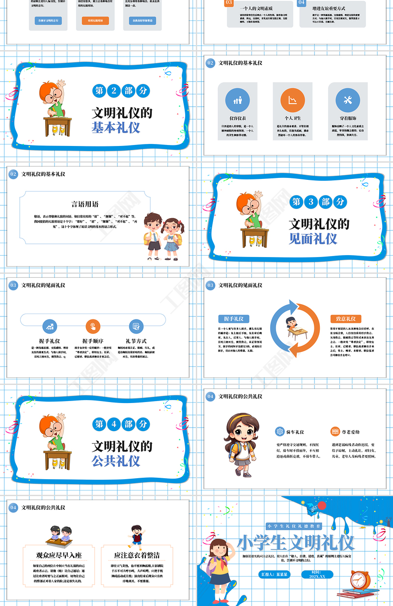 工圖網(wǎng)提供精美風(fēng)小學(xué)生文明禮儀PPT禮儀禮德教育學(xué)習(xí)課件供會員免費下載。更多精彩黨課PPT素材,盡在工圖網(wǎng)。