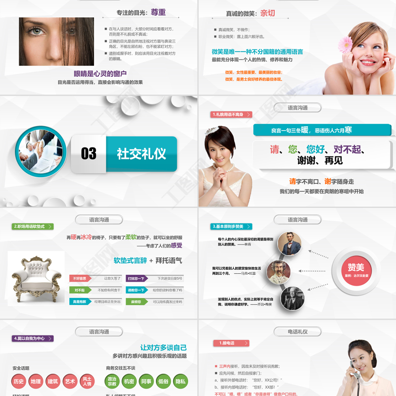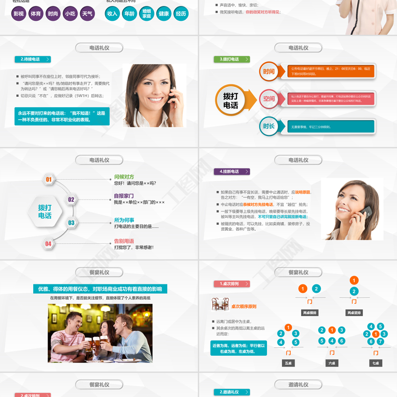 工圖網(wǎng)提供企業(yè)員工商務(wù)禮儀培訓(xùn)PPT模板供會員免費下載。更多精彩黨課PPT素材,盡在工圖網(wǎng)。