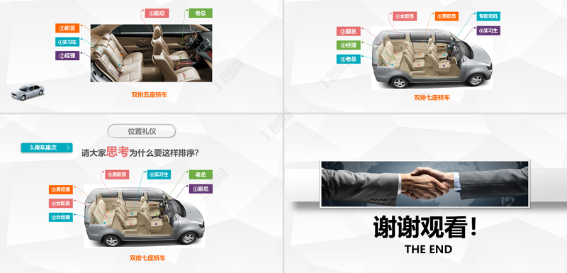 雙排七座轎車專職司機①老總③經(jīng)理②副總④女職員⑥實習(xí)生⑤男職員請大家思考為什么要這樣排序?延遲符