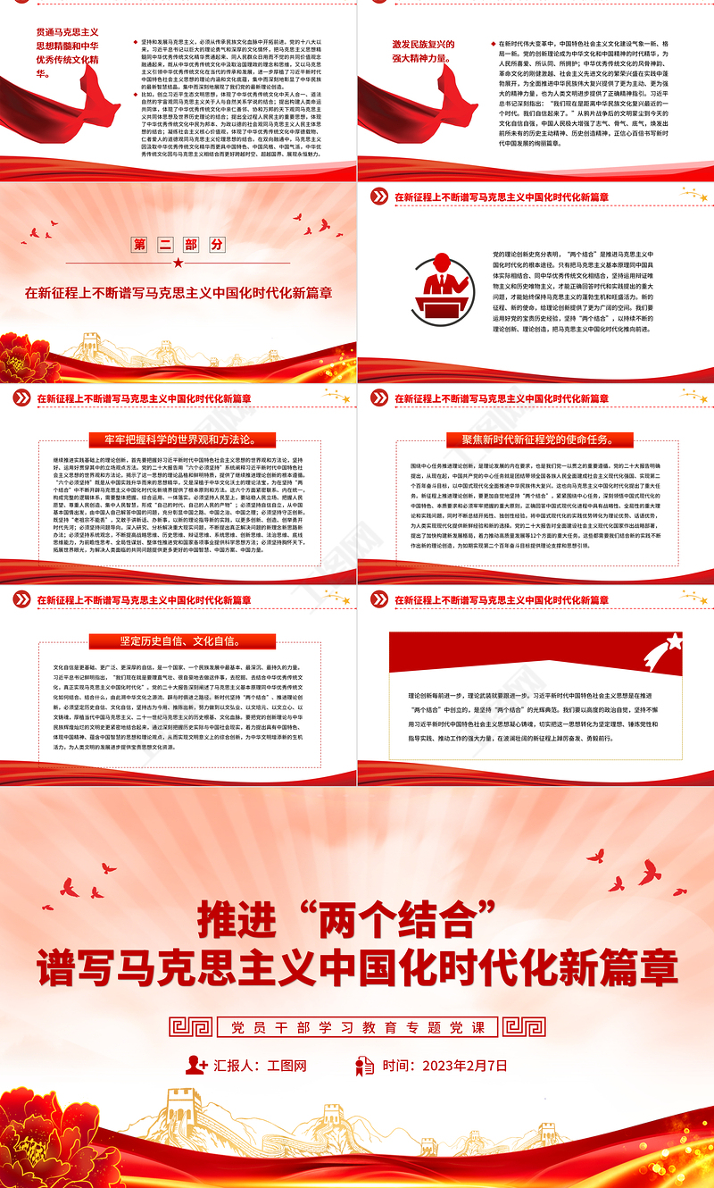 2023推進“兩個結合”譜寫馬克思主義中國化時代化新篇章PPT大氣精美風黨員干部學習教育專題黨建課件 Array