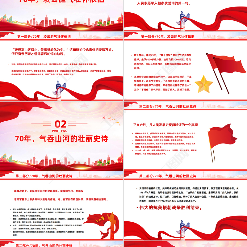 2023抗美援朝戰爭勝利70周年PPT紅色黨政風紀念抗美援朝戰爭勝利70周年專題黨課課件模板下載 Array
