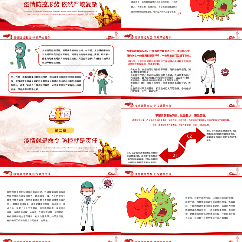 2021戰疫黨課PPT紅色黨建風牢牢扛起政治責任全民加強疫情防控黨員教育培訓模板