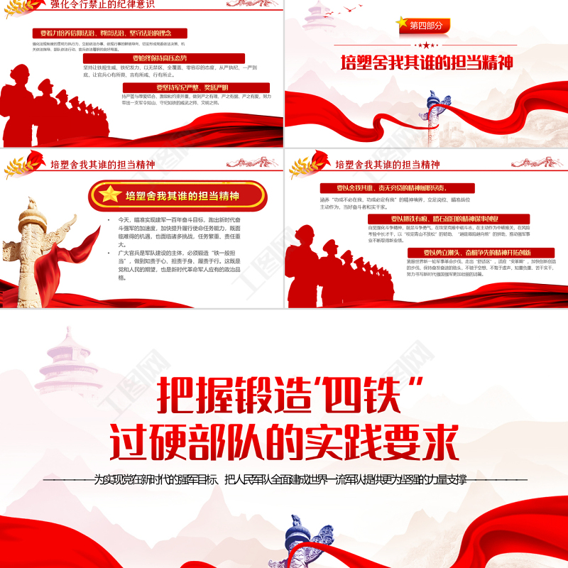 工圖網(wǎng)提供把握鍛造四鐵過硬部隊(duì)的實(shí)踐要求PPT黨建風(fēng)慶祝建軍95周年專題黨課課件模板供會(huì)員免費(fèi)下載。更多精彩黨課PPT素材,盡在工圖網(wǎng)。