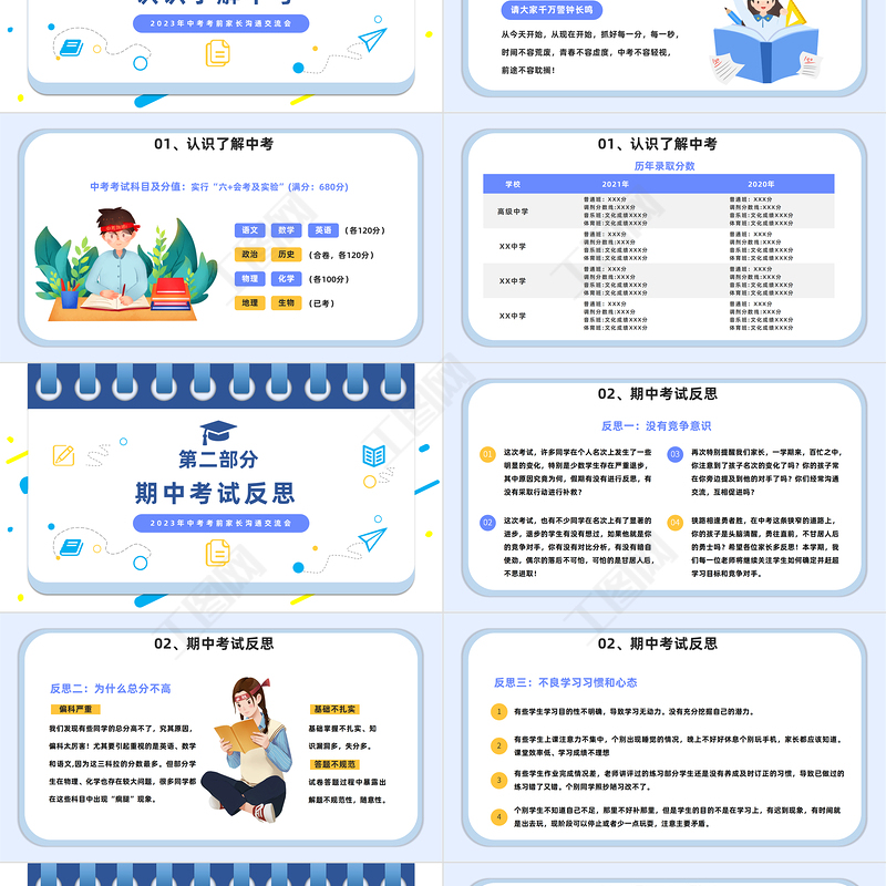 2023中考前家長會PPT卡通風中考考前家長溝通交流會課件模板下載 Array