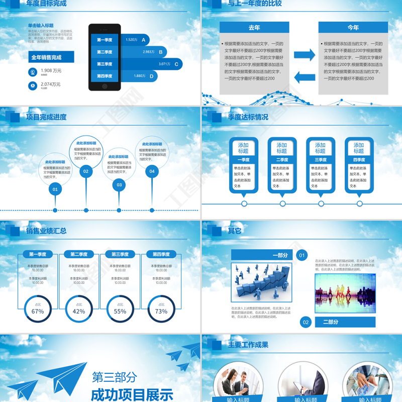 公司 銷售部 行政部 人事部 保險 企業 房地產 運營部 管理部 營銷部 醫生 金融 互聯網 人事 行政 單位 廣告 員工 策劃 上 下 半年 季度 年終 年中 工作 總結 匯報 計劃 PPT 飛機 模板 新年 年終模板 年終工作 新年模板 Array