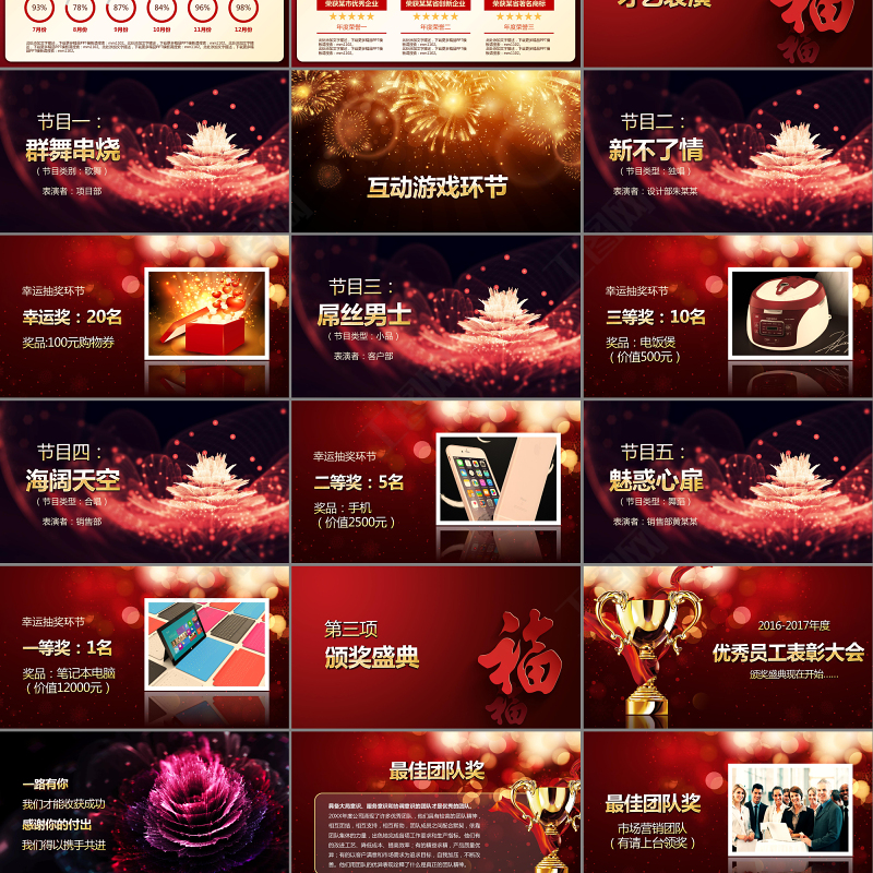 第一項:回顧2016第二項:才藝表演第三項:頒獎盛典第四項:展望2017第五項:新年寄語晚會流程