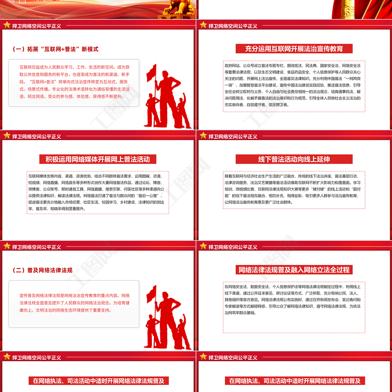 工圖網提供新時代的中國網絡法治建設PPT簡潔精美堅持依法治網持續推進網絡空間法治化專題課件供會員免費下載。更多精彩黨課PPT素材,盡在工圖網。