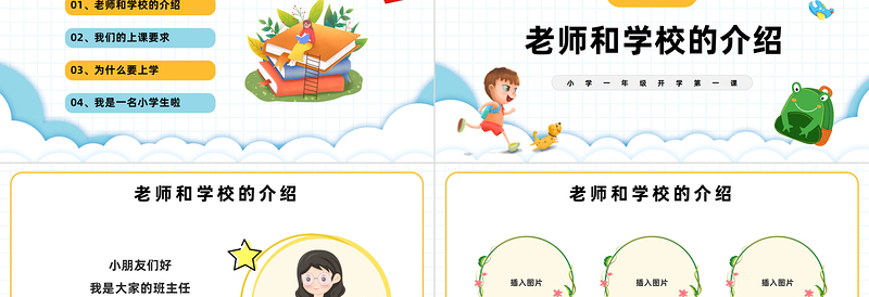 2023領跑新學期PPT卡通風小學一年級開學第一課主題班會課件模板下載 Array