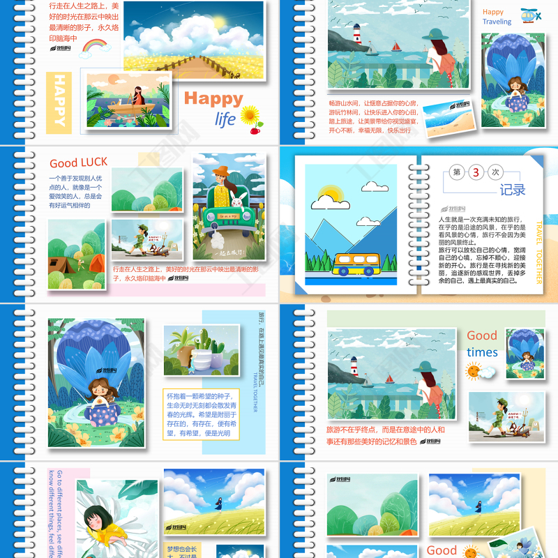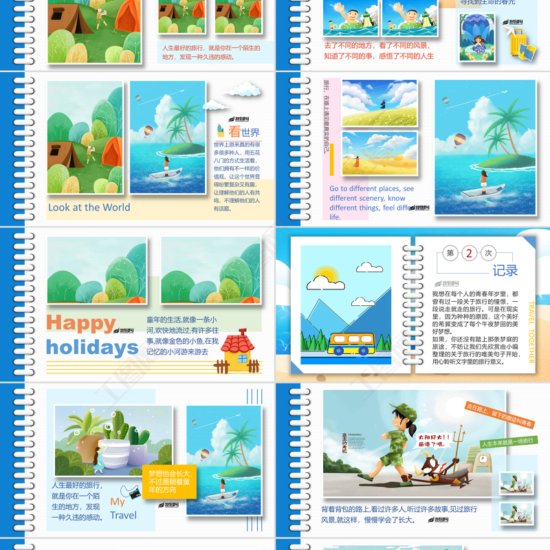 原創我的快樂旅行假期旅游記錄PPT相冊模板-版權可商用