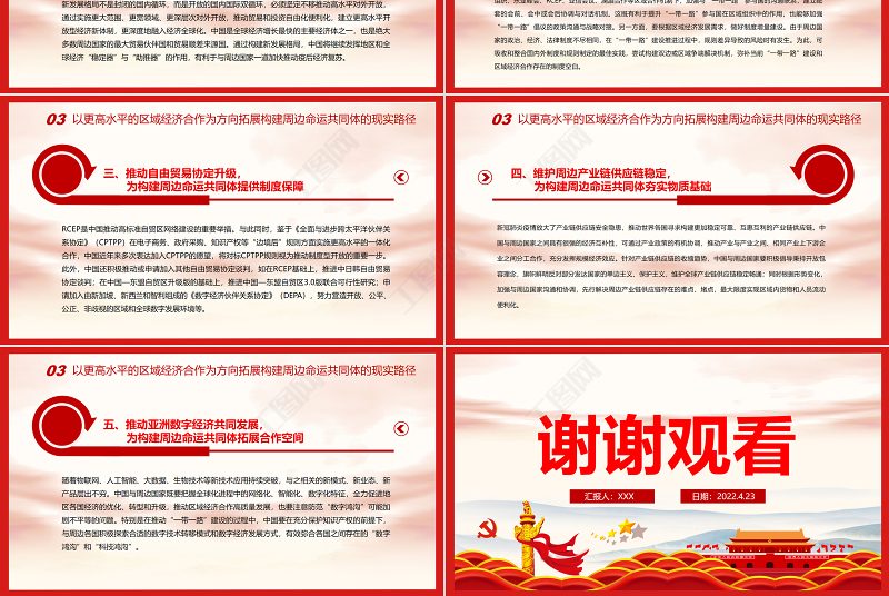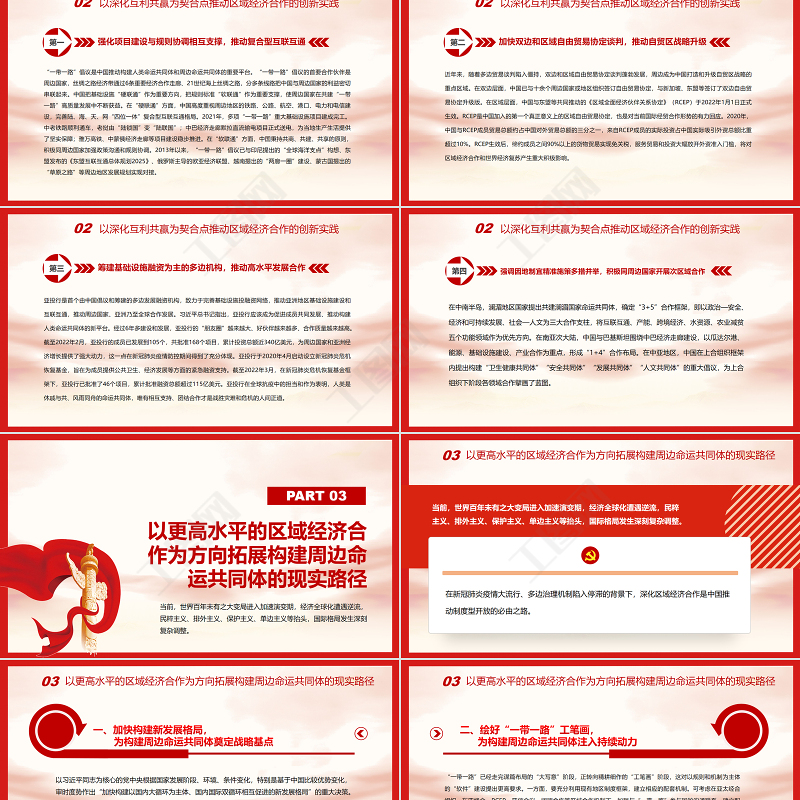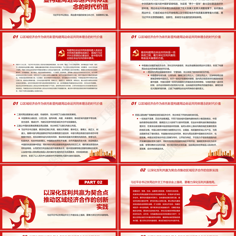 引領區域經濟合作新實踐深入構建周邊命運共同體PPT紅色黨政風黨員干部學習教育專題黨課課件模板